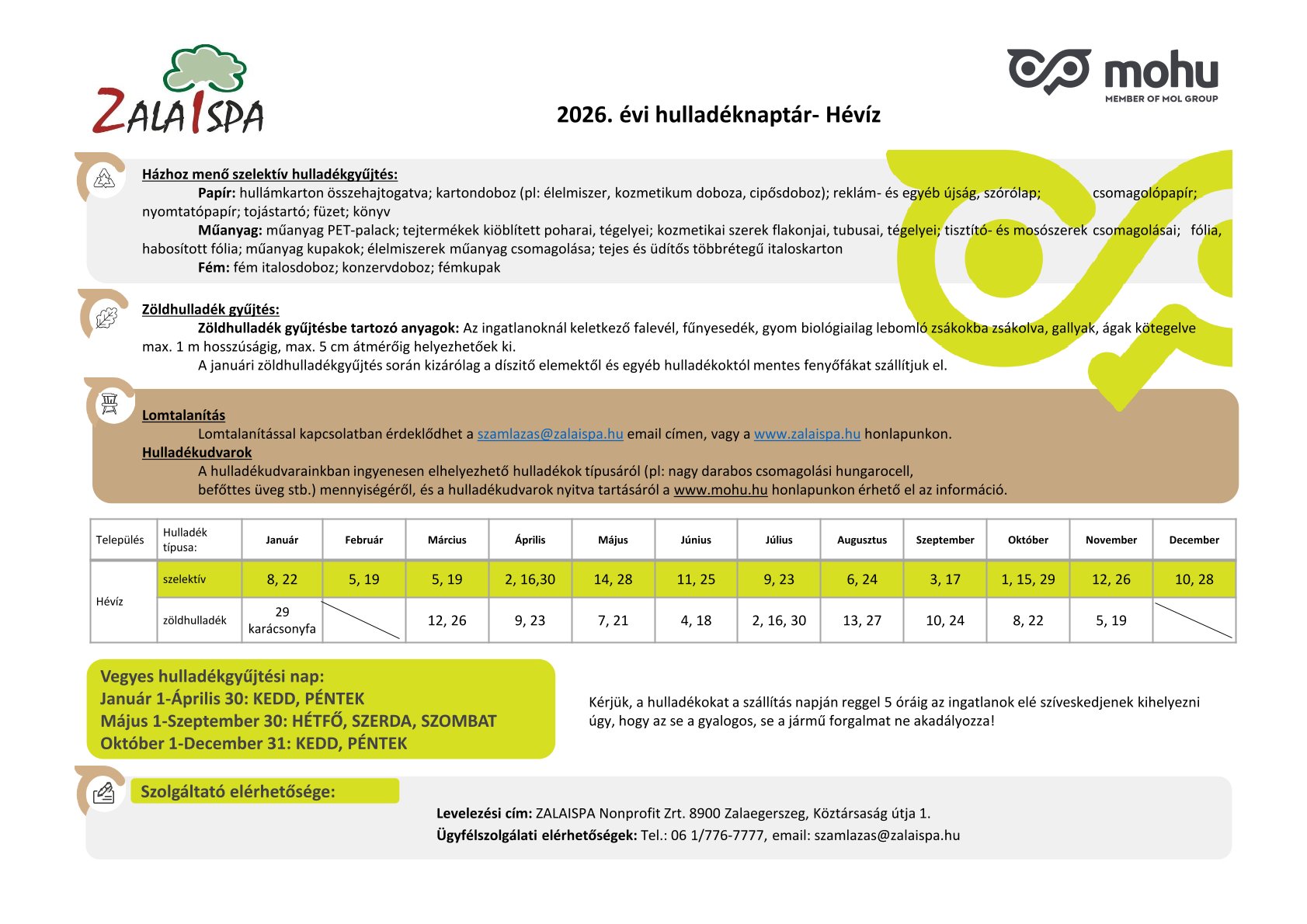 2026. évi hulladékszállítási naptár